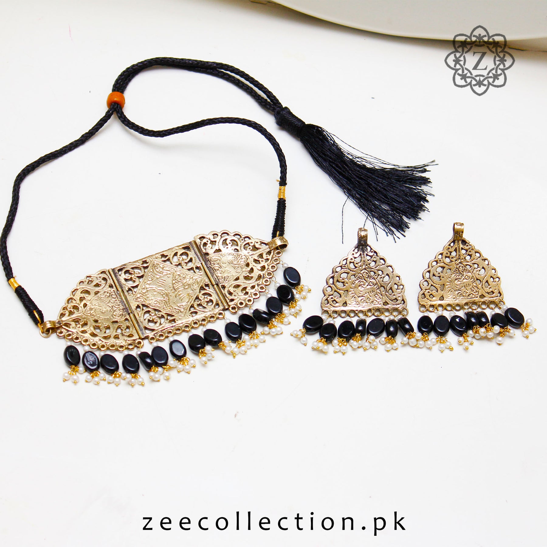 handcraft traditional antique afghani choker set. high-quality brass as the base metal. approximate earrings length is 2.″. this set makes ideal statement wear for your festive and delighted days! don’t miss out on amazing jewels for special days!