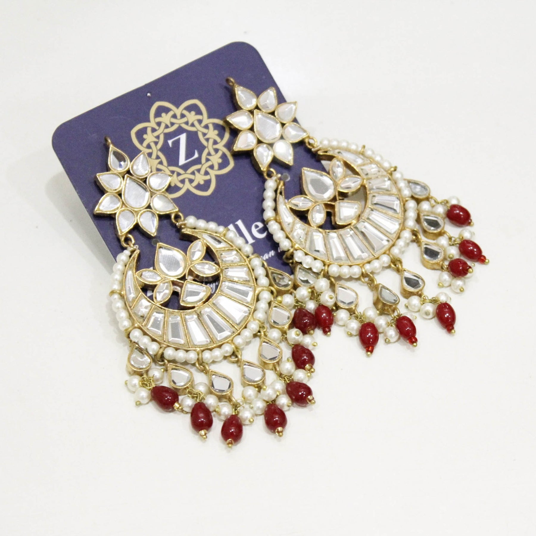 this kundan chand bali is hand made . 22-k gold polish with kundan stone and beads locking the extremely high elegance piece of art earrings four you. in short its a choice of queen.