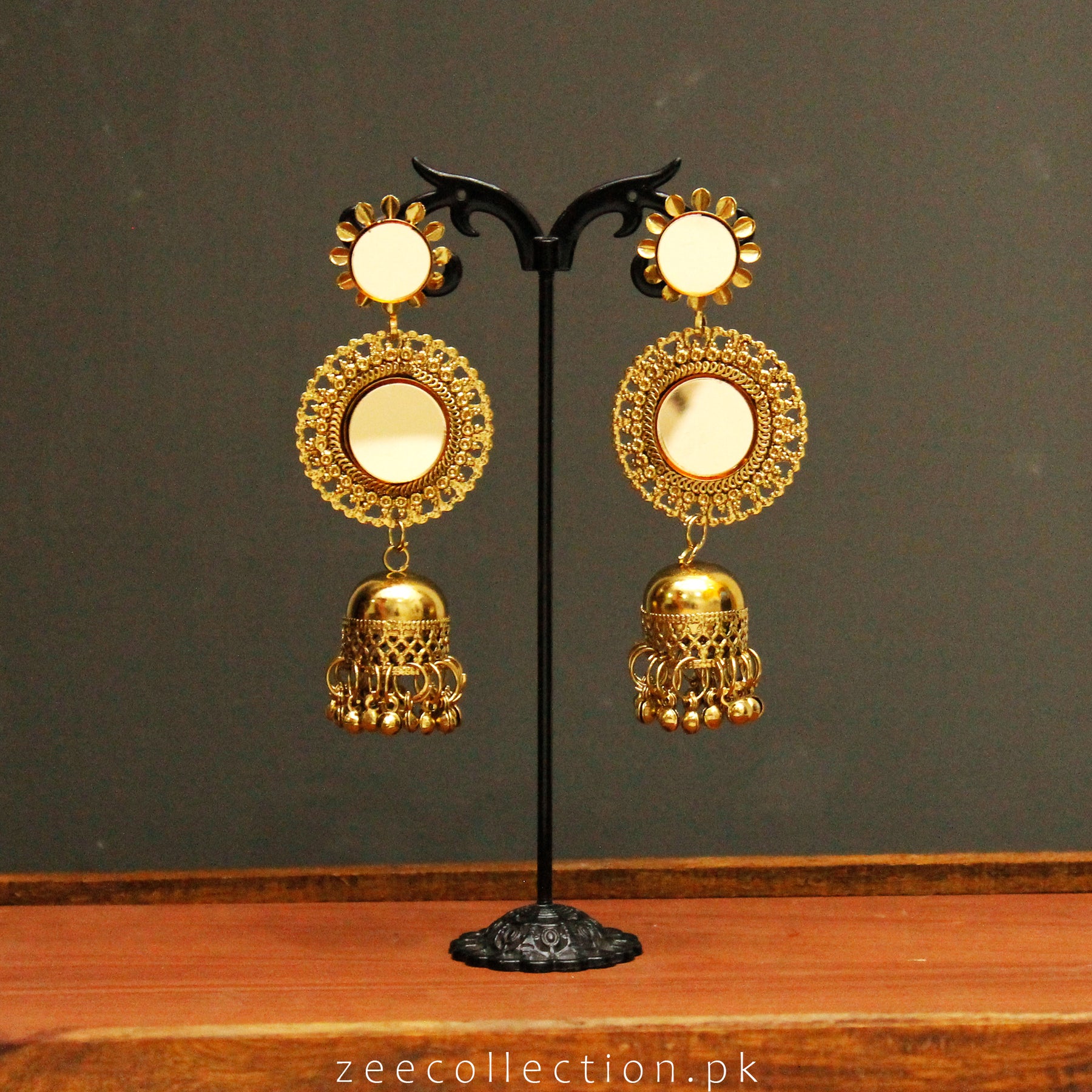 a special item from the house of zee collection. a very elegant and beautiful handcrafted mirror jhumki 31. a pair of earrings. this set makes ideal statement wear for your festive and delighted days! don’t miss out on amazing jewels for special days!