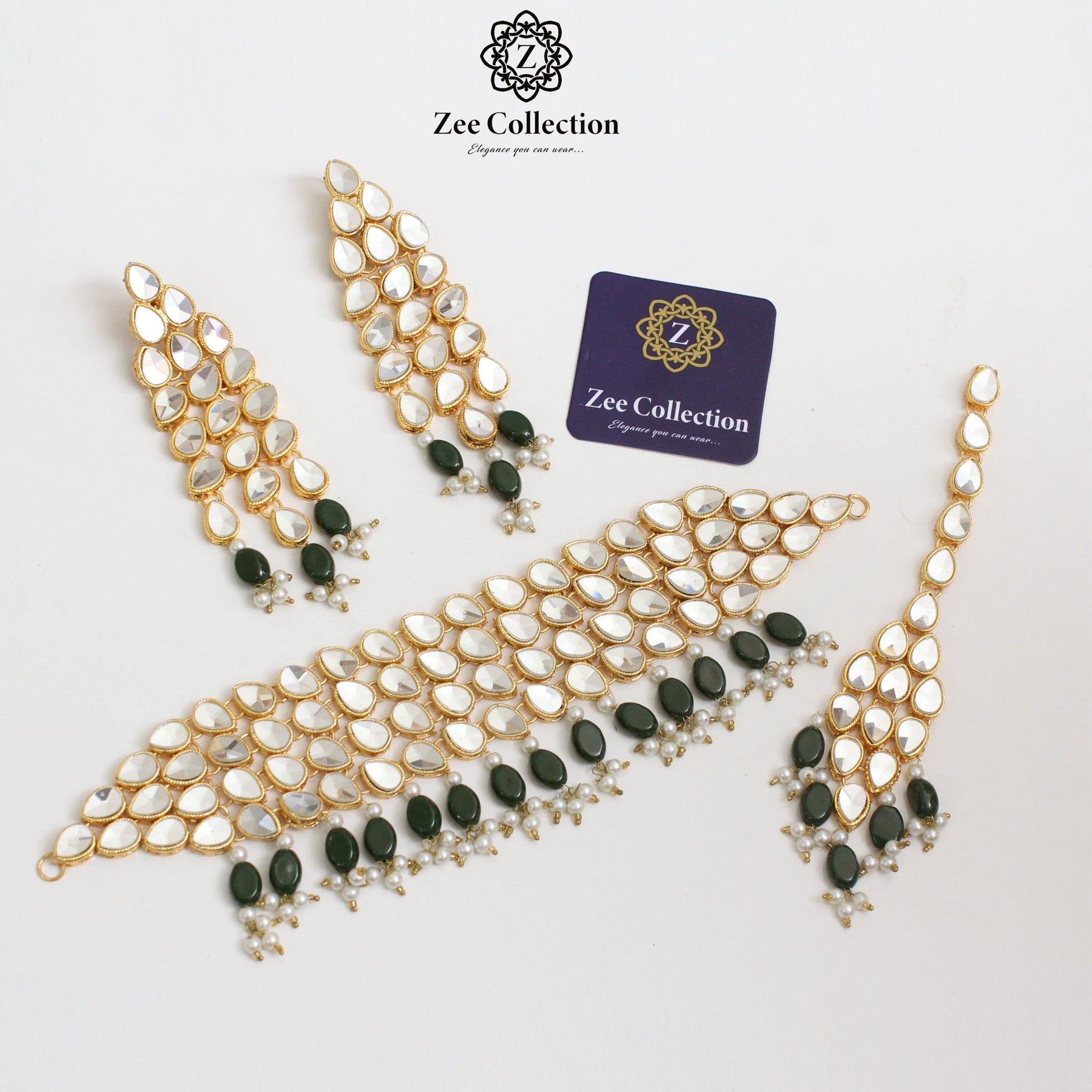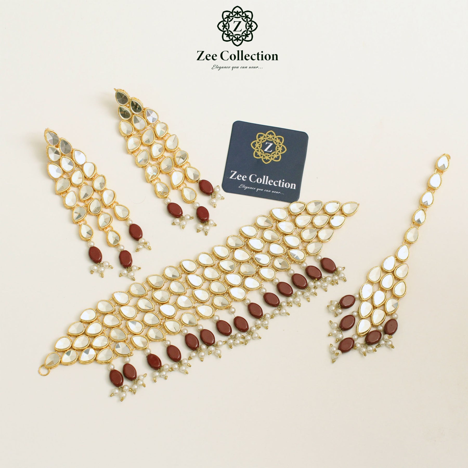 this antique kundan chokar style is necklace set with gorgeous imitation pearls and alluring stones is a new design for artificial jewelry on our online shop.