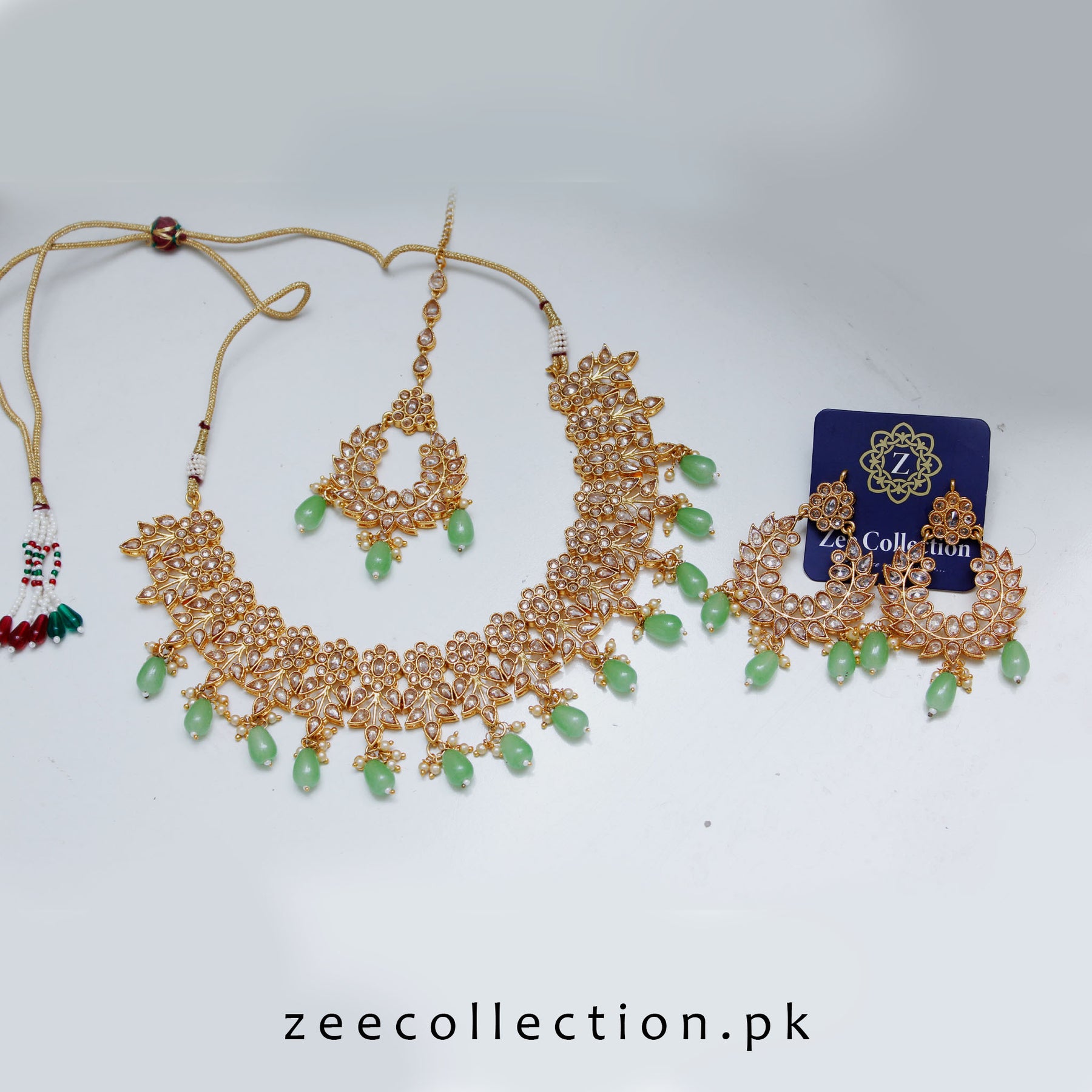a special item from the house of zee collection. a very elegant and beautiful handcrafted abra necklace set with a pair of earrings. this set makes ideal statement wear for your festive and delighted days! don’t miss out on amazing jewels for special days!