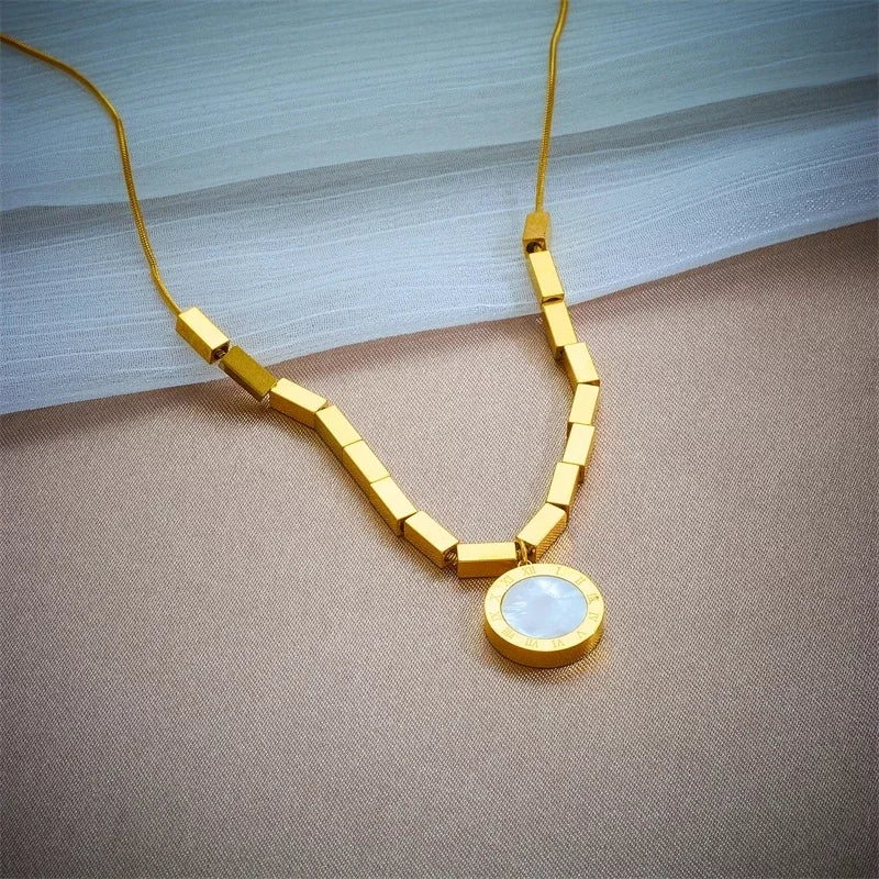 this elegant round necklace is both fashionable and trendy, making it the perfect accessory for any stylish individual. Made with high-quality stainless steel, it is resistant to fading and will remain a timeless piece in your collection. Perfect for girls who appreciate both style and quality.