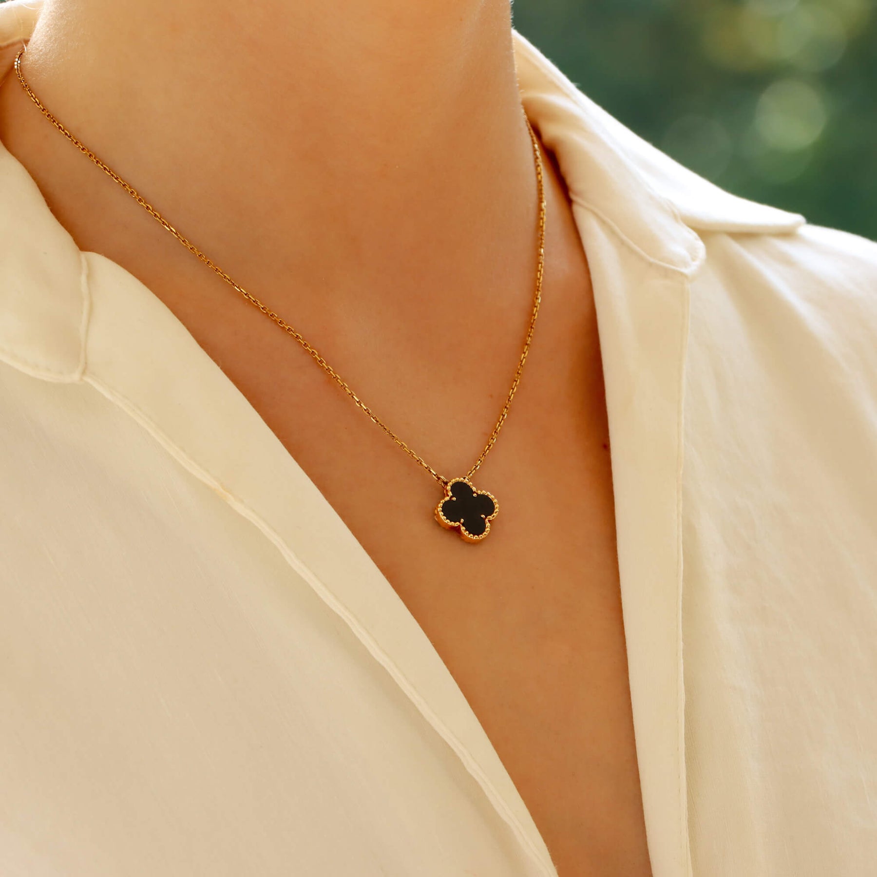 add a touch of elegance to any outfit with our Four Leaf Clover Pendant. Made with durable stainless steel, this non-fading chain can be worn to any occasion, making it perfect for versatile women. Whether you're dressing up for a party or simply want to add a touch of style to your everyday look, this pendant is sure to make a statement.