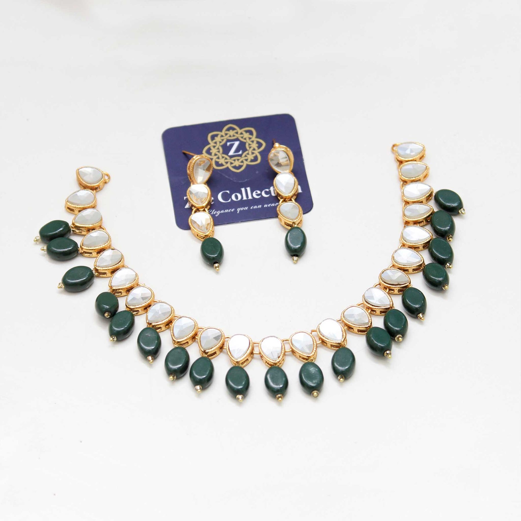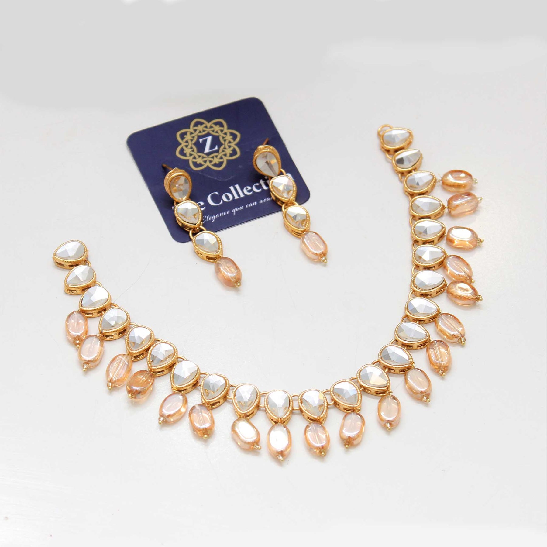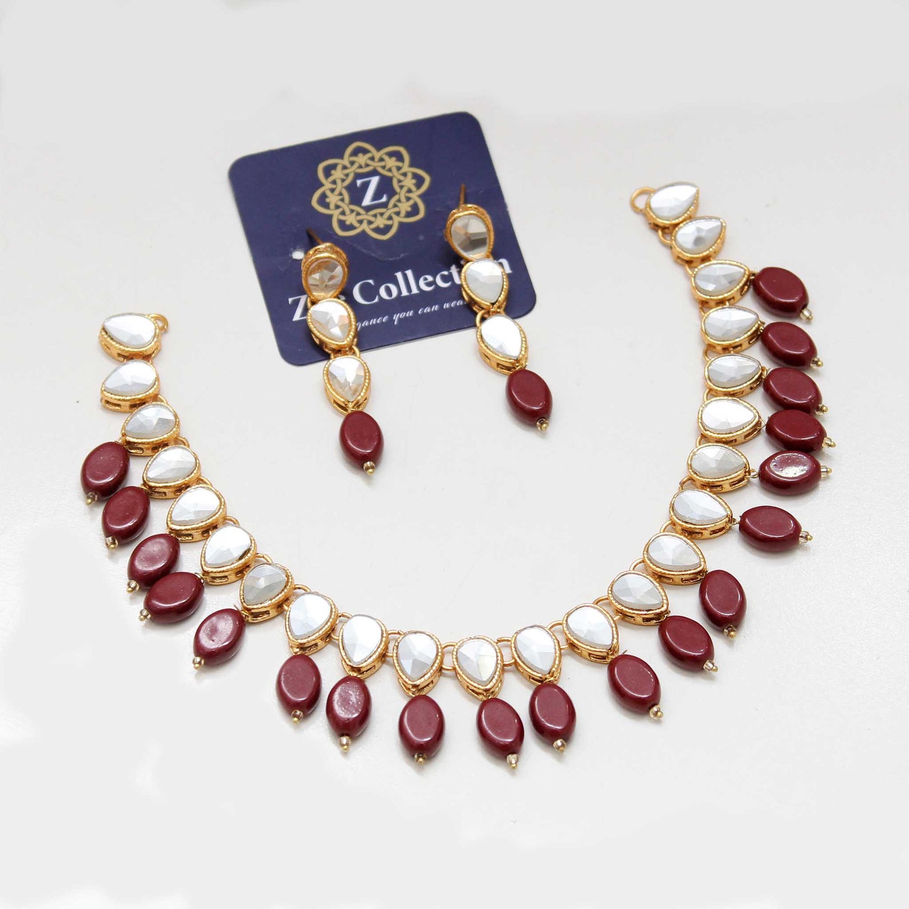 handcraft kundan beaded necklace set. high-quality brass as the base metal. approximate earrings length is 2.5″.. this set makes ideal statement wear for your festive and delighted days! don’t miss out on amazing jewels for special days!