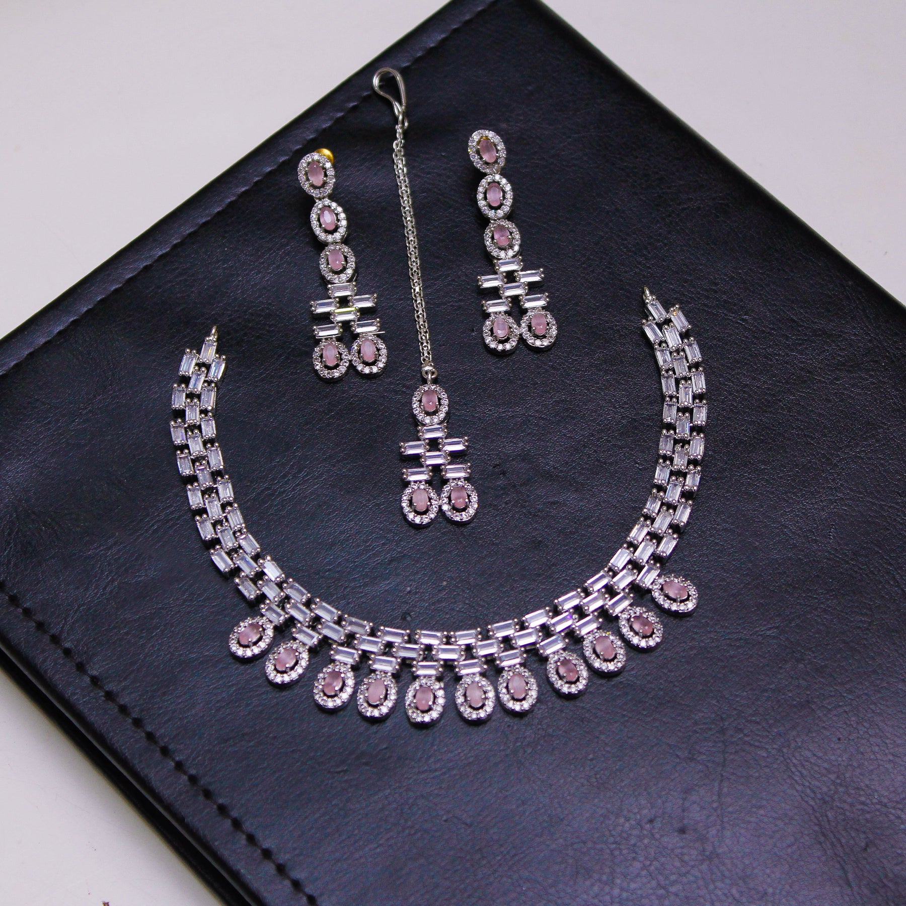 a special item from the house of zee collection. a very elegant and beautiful handcrafted m3 diamante necklace. a pair of earrings approximate size 1.5". this set makes ideal statement wear for your festive and delighted days! don’t miss out on amazing jewels for special days!
