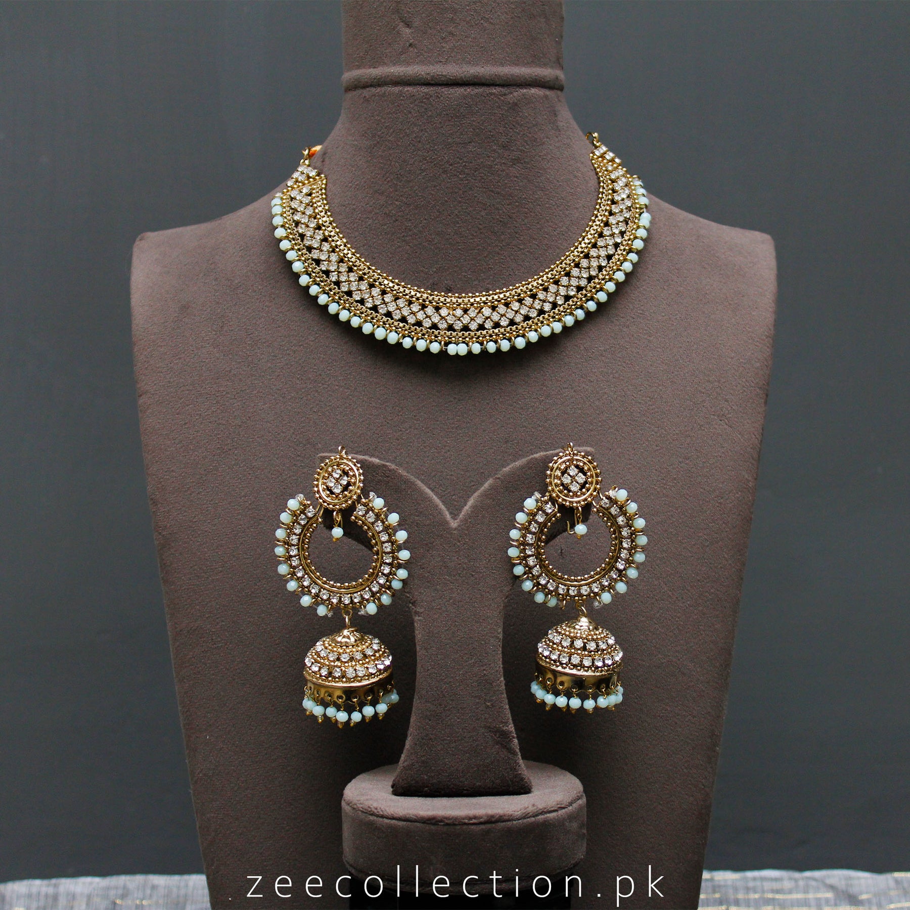 handcraft shumaila manjos set and matching earrings. high-quality brass as the base metal. approximate earrings length is 2.5″.. this set makes ideal statement wear for your festive and delighted days! don’t miss out on amazing jewels for special days!